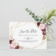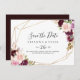Este rústico follaje floral de boda horizontal, salvo la fecha, es perfecto para un simple boda. El diseño se caracteriza por unas bonitas flores y un follaje pintados a mano y coloridos, elegantemente dispuestos en bonitos ramos, adornando un marco geométrico dorado.