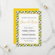 Elegante invitación SAVE THE DATE con el contorno del mapa de la bandera de JAMAICA en un patrón de baldosas y borde de falso oro. El mensaje de las Escrituras dice 'Y los dos se convertirán en uno'. El diseño se puede personalizar completamente con su propio mensaje y para sus propias celebraciones especiales, por ejemplo, cumpleaños, días de la independencia, días del patrimonio, reuniones familiares, etc. La línea de puntos es para que agregue el nombre(s) de su(s) invitado(s). Papelería a juego disponible. Una forma maravillosa de celebrar su fe y su bandera en su día especial.