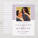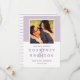 Bodas modernas, excepto las tarjetas de invitación de fecha, presentan una foto de compromiso cuadrado enmarcada en espliego claro / púrpura lila con un sencillo y minimalista estilo monograma de los nombres de novias con un elegante guión de ampersand. Personalice el texto de guardar la fecha con la fecha y ubicación del boda. La parte posterior de la tarjeta incluye un elegante patrón de rayas horizontales finas y blancas.