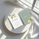 Esta hermosa tarjeta Save the Date de inspiración mediterránea presenta limones acuarelas con una elegante vegetación y delicadas flores de jazmín enmarcadas en un borde amarillo de mantequilla. Azul sabio clásico en la parte posterior con sus iniciales. Una elección elegante para una boda primavera/verano, al aire libre, con temática natural o de destino.
