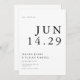 Anuncie su gran día con la elegancia atemporal usando este moderno blanco y negro ahorra la tarjeta de fecha. El diseño minimalista y la tipografía audaz crean un estilo limpio y elegante que marca el tono para su próxima celebración. Perfecto para las parejas que aprecian la simplicidad con sofisticación, esta tarjeta garantiza a sus huéspedes la marca de sus calendarios.