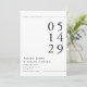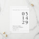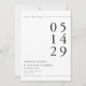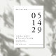 Anuncie su gran día con la elegancia atemporal usando este moderno blanco y negro ahorra la tarjeta de fecha. El diseño minimalista y la tipografía audaz crean un estilo limpio y elegante que marca el tono para su próxima celebración. Perfecto para las parejas que aprecian la simplicidad con sofisticación, esta tarjeta garantiza a sus huéspedes la marca de sus calendarios.