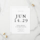 Anuncie su gran día con la elegancia atemporal usando este moderno blanco y negro ahorra la tarjeta de fecha. El diseño minimalista y la tipografía audaz crean un estilo limpio y elegante que marca el tono para su próxima celebración. Perfecto para las parejas que aprecian la simplicidad con sofisticación, esta tarjeta garantiza a sus huéspedes la marca de sus calendarios.
