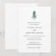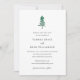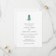 Invitación moderna de boda para guardar la fecha con un diseño simple que incluye un árbol de pino pintado a mano con acuarela y los detalles de su evento en fuentes serif y script.