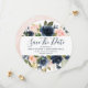 Reserva La Fecha Boda moderna con florales acuarela rosa y azul mar
