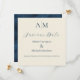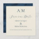 Hermosos monogramas de la novia y el novio en la parte superior de esta hermosa tarjeta de Save the Date de boda. Fondo ecru con fuente azul profundo para coordinar con la parte posterior azul desgastada de esta elegante invitación. Absolutamente impresionante.