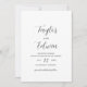 Tarjeta de aviso de boda en blanco y negro contemporánea con un diseño simple y minimalista con sus nombres en una elegante letra de caligrafía y los detalles de su boda a continuación en un formato moderno. Una opción sin foto para una pareja que quiere un aviso de boda sin imágenes.