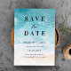 La tarjeta de aviso de Boda Moderna de Verano en la Playa del Océano presenta un cautivador entorno costero junto a la playa, con vistas al vasto océano. Este idílico destino de playa es perfecto para tu día especial. Celebra tu amor con una ceremonia impresionante en medio del sonido tranquilizador de las olas.