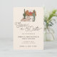 Invitación bohemia personalizada de boda en el desierto para guardar la fecha con una ilustración moderna del paisaje del desierto con una puesta de sol y cactus, fuente de letra moderna para Guardar la fecha y plantilla de texto totalmente personalizable para los nombres de la pareja y la información de la boda. Lindo patrón del desierto en la parte posterior sobre un fondo cálido de terracota marrón.