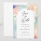 Tarjetas elegantes y modernas de "Save the Date" para boda con flores en acuarela y pasteles. Todos los campos son editables. Vea nuestra suite de boda a juego en nuestra tienda Zazzle.