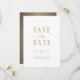 Elegante Boda Moderna Blanco Guardar la Fecha. Diseño de tipografía moderna elegante. Texto de color oro antiguo sobre blanco con la parte trasera con una impresión original de arte abstracto moderno en oro antiguo de técnica mixta. Personalice con su propio texto. Un hermoso diseño de guardar la fecha excelente para bodas, compromisos, aniversarios y otras ocasiones especiales. Por favor visite nuestra tienda, Austen & Grace, para ver el conjunto de boda completo, productos coincidentes y más, y por favor contáctenos si necesita ayuda contact@austenandgrace.com
