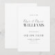 Tarjetas modernas de aviso de boda con diseño elegante y chic y estilo minimalista en color blanco y negro.