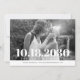 Tarjeta de "Save the Date" de boda de 5x7 horizontal con un diseño de tipografía simple y moderna con una superposición de fecha de fuente serif grande y negrita de moda sobre la foto que subes a la plantilla y escribes tus nombres y ubicación y fecha de la boda para un diseño rápido y fácil que funcionará con el tema que elijas más adelante. Los colores de fondo y las fuentes son editables para que coincidan con tu esquema de color, y puedes agregar más información o fotos adicionales en la parte posterior.