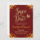 Anuncie su día especial con estilo con esta impresionante tarjeta de Save the Date geométrica de color burgundy y dorado. Con un fondo rojo intenso y profundo con acentos dorados lujosos, este diseño emana elegancia y sofisticación. Perfecto para bodas formales, celebraciones de otoño o eventos nocturnos, este Save the Date asegura que sus invitados marquen sus calendarios para su día inolvidable. Personalícela con sus nombres y detalles de la boda para un hermoso recuerdo.
