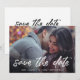 La foto moderna permite guardar la tarjeta de fecha con la imagen horizontal de la sangría completa con una superposición de texto. Las palabras "guardar la fecha" se encuentran en un tipo de letra de escritura a mano de guión de pincel blanco. El fondo tiene todos los detalles de su boda en negro sobre un fondo blanco. Un diseño sencillo pero elegante que hace de tu foto la característica principal.