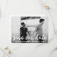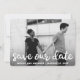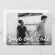 La foto moderna permite guardar la tarjeta de fecha con la imagen horizontal de la sangría completa con una superposición de texto. Las palabras "guardar nuestra fecha" están en un grueso tipo de letra manuscrita blanca. El reverso tiene un corazón y una línea de texto para el sitio web de su boda o información adicional. Un diseño sencillo pero elegante que hace de la foto la característica principal.