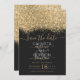 Reserva La Fecha Boda Moderno Lujo Dorado Negro Purpurina Confeti