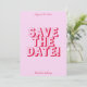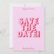 Esta moderna y retro funky Boda minimalista Guardar la plantilla de fecha es genial para usted. Si está buscando una boda bonito, elegante y fácil de personalizar Guardar la plantilla de fecha . Una moda de escritura rosa pálido muy elegante y simple, guardar la fecha. Lo que presenta magenta rojo mínimo salva la tipografía de fecha negrita sobre fondo rosa pálido funky claro y brillante. Con el compromiso con el personalizable o simplemente con la foto del novio casual y de la novia. Agarra esta elegante boda, ahorra la fecha y haz que tus invitaciones estén realmente comprometidas.