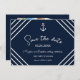 Un diseño clásico de ancla náutica azul marino y blanco permite que la fecha sea perfecta para tu próximo boda con temática náutica, náutica o de playa. Añade los detalles de su boda al frente y la foto al fondo. Para obtener los mejores resultados, recortar la foto antes de subir. Si te cuesta conseguir que tu foto encaje correctamente, contacta conmigo - estaría encantado de ayudar.