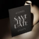 Crea una primera impresión impactante con esta tarjeta negra de "save the date" para tu boda, diseñada para parejas que aman la simplicidad moderna con un toque dramático. La parte frontal presenta tipografía minimalista y audaz sobre un fondo negro profundo, creando un aspecto refinado y contemporáneo que inmediatamente establece el tono para tu celebración. La parte trasera incluye espacio para una foto favorita junto con tu sitio web de boda y código QR, lo que facilita a los invitados acceder a detalles, información de viaje y actualizaciones en un solo escaneo. Ideal para bodas en la ciudad, eventos nocturnos y lugares modernos. Este diseño combina perfectamente con estéticas de boda elegantes, monocromáticas o minimalistas. Personaliza con tus nombres, fecha, ubicación, foto y enlace personalizado para crear un anuncio pulido y memorable que se destaque y siga siendo atemporal. Disponible como tarjeta impresa y descarga digital.
