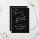 Con su lujoso fondo negro que prepara el escenario para una elegante celebración de gama alta, esta exquisita carta caligráfica de "Boda negra salva la fecha" exuda un encanto contemporáneo y refinado. Haciendo hincapié en la belleza de la simplicidad, esto ahorra la invitación a la fecha con un enfoque minimalista, permitiendo que la elegancia de su evento brille sin esfuerzo. Diseñada con la máxima precisión, la magnífica tipografía caligráfica añade un toque de sofisticación, mientras que el uso mínimo de elementos mantiene el foco en los detalles del boda, creando un efecto atemporal y cautivador. Sumérjase en el mundo del lujo subestimado invitando a sus seres queridos a compartir su alegre ocasión. Para ver los elementos que coincidan, visite la colección Black Elegant Minimal Modern Dark Wedding invitaciones.