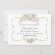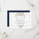 Diseño de ramo de rosas blancas y rosadas único y elegante. Cuenta con hermosos ramos de rosas blancas y rosadas en acuarela, un marco dorado falso, sobre un fondo blanco. En la parte posterior: un fondo azul marino rico y flechas con corazones, flores, iniciales de novia y novio. Agregue su información. Para artículos coincidentes, visite mi Colección de Rosas Blancas Doradas.