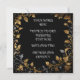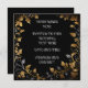 Invitación de boda personalizada con hoja de oro y plata y fondo negro.