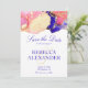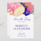 Una boda moderna lavada con tinta Salva la tarjeta Date con un encabezado de arte abstracto rosa, púrpura y dorado. Esta vibrante boda efecto ágate ofrece un lavado artístico de tinta colorida que rodea un estanque de oro. Agregue fácilmente los detalles de su boda a la plantilla utilizando las herramientas de personalización de Zazzle. Póngase en contacto con nosotros si necesita ayuda amoreamore@paulinebenjes.com