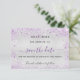 Un fondo moderno con apariencia de plata decorado con purpurina falsa morada, destellos y un vestido. Personalice y agregue una fecha y nombres. El texto: Reserve la fecha está escrito con una fuente de letra manuscrita de moda y de gran tamaño.