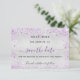 Un fondo moderno de aspecto plateado falso decorado con purpurina falsa morada, destellos y un vestido. Personaliza y añade una fecha y nombres. El texto: Save the Date está escrito con una tipografía de letra grande y de moda.