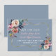 Diseño romántico y elegante con delicados ramos de flores de acuarela en azul polvoriento y rosa brumoso, marco dorado precioso, sobre un fondo azul polvoriento. En la parte posterior, un ramo de rosa brumoso azul polvoriento con flechas como divisor, y las iniciales de la novia y el novio. Utilice la herramienta Personalizar para agregar su información. Para artículos coincidentes, visite mi Colección de Flores Azules Doradas.