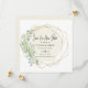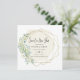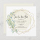 Una manera elegante de hacer saber a amigos y familiares que has reprogramado a tu boda. Un marco geográfico dorado rodea los detalles de fecha de su boda. El fondo blanco de marfil suave resalta el texto. Save Our New Date se escribe en un guión moderno, con detalles a continuación. Flores naturales muy bonitos se esconden en hojas de follaje verde salado que decoran el marco geométrico de oro. Guardar nuestro nuevo fondo de tarjeta de fecha es beige.