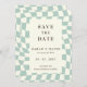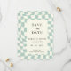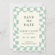 Reserva La Fecha Boda Retro Groovy Green Checkerboard