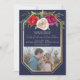Esto permite guardar las coordenadas perfectas de la fecha con la colección boda Floral radiante. La parte delantera incluye flores color burdeos, rojo, ciruela y color crema rosa + un marco dorado contra un fondo azul marino y una foto del futuro novio y novia. En la parte trasera hay una foto adicional. Por favor, contáctame si quieres ayudar a personalizar esta fecha para guardar.