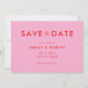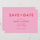 Las bodas minimalistas modernas ahorran las tarjetas de fecha con un diseño sencillo, caligrafía elegante de color rosa y rojo.