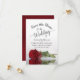 Esta boda Save the Date card es romántica, elegante, elegante y hermosa. En él se ve una fotografía de una única rosa roja de tallo largo reflejada en un estanque de agua con olas y olas. El texto es una caligrafía de guión sofisticada en un fondo blanco. La parte posterior presenta un diseño rojo profundo o burdeos. Una forma perfecta de hacer saber a sus amigos y familiares de su próximo boda.