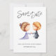 Romántico lindo salva la invitación de boda de cita con el ilustracion de un chica y un niño. Ilustrado y diseñado por Patricia Álvarez.