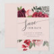 Hermoso ramo de novia acuarela, con flores en ricos tonos rojos y rosas, adornado con botánicos verde plateado. Los detalles de su boda, con fuentes encantadoras...el resultado es una magnífica invitación que sus huéspedes estarán encantados de recibir y responder.