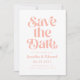 Retro y elegante guardar la tarjeta de fecha con el tipo de letra boho que dice "guardar la fecha" en color rosa en un fondo blanco. Puede añadir una foto en la parte posterior.