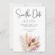 Anuncie su día especial con esta boda neutra boho pampas salve la tarjeta de fecha. Con tonos tierra, hierbas acuáticas y elegante tipografía moderna, este diseño es perfecto para celebraciones rústicas, bohemias o minimalistas de bodas.