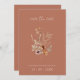 Rústica Terracota Otoño Cae Flores Silvestres Boda Salven las tarjetas de fecha - Elegancia rústica para su celebración del Boho. Celebra tu amor en el cálido abrazo del otoño con nuestras sencillas e impresionantes tarjetas de boda de última generación, que muestran una armoniosa mezcla de tonos marrones y terracota. El encanto rústico de estas tarjetas de ahorro de la fecha se complementa perfectamente con la belleza de las flores de otoño, que resumen el espíritu bohemio de su día especial. El diseño minimalista le da un toque de elegancia al lugar perfecto para un boda rústico de inspiración bohemia. Comparte el encanto de tu historia de amor con la familia y amigos a través de estas exquisitas tarjetas de boda otoñales para guardar la fecha.