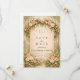 Un diseño romántico inspirado en el bosque que presenta flores suaves y neutras, elegantes cuernos y un fondo cálido de pergamino vintage. La composición combina el verde orgánico con detalles refinados para una estética boho atemporal que se siente íntima, natural y silenciosamente lujosa, perfecta para parejas que se sienten atraídas por el romance clásico con un toque rústico y orientado a la naturaleza.