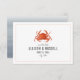 Una boda náutica rústica salva la fecha con el ilustracion de un cangrejo rojo con texto gris y una pirámide roja descolorida delante. En la parte posterior se ha diseñado un diseño inspirado en las acuarelas de color ambray.