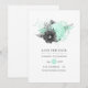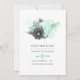 Invitación de boda rústica vintage con flores en acuarela con acentos de menta y negro carbón para guardar la fecha.