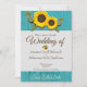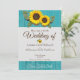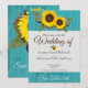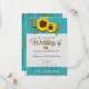Invitación de boda de país moderno encantador de madera azulada rústica, girasol dorado, perfecta para las bodas de este año