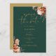 Esta elegante floral de color verde esmeralda y dorado, que ahorra la invitación de fecha, puede ser personalizada con su información en tipografía de moda. Diseñado por Thisisnotme©