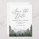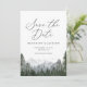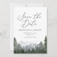 Invite a amigos y familiares a marcar sus calendarios en anticipación a su ceremonia boda con esta elegante reserva de la fecha, con las montañas acuáticas y los pinos.