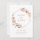 Caída moderna excepto la tarjeta de fecha con la decoración rústica acuática vegetación vegetal botánica otoño y hojas de Relieve metalizado de cobre falsas y marco geométrico, simple y elegante, excelente para otoño boda rústico, bodas botánicas de invierno. Ver todas las piezas coincidentes de la colección