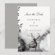 Invitación de Boda Reserva la Fecha Bosque Encantado. El texto es totalmente personalizable. Con un ciervo en el bosque en una noche brumosa. Parte de la colección Encantado. Esta colección presenta colores otoñales de joyas oscuras con púrpura, azul, gris, negro, verde y más. Tema otoñal melancólico, rústico y gótico.