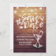 Guardar las plantillas de tarjetas de invitación a la boda de la fecha - Elegante guión de letras, Vintage Champagne Glasses y String Lights on Rustic Wood Background. ¡Un Diseño Perfecto Para Tu Gran Día! Todos Los Estilo De Texto, Los Colores Y Los Tamaños Se Pueden Modificar Para Ajustarse A Sus Necesidades.